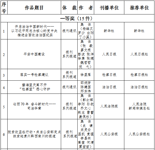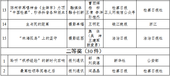 为确保评选公平公正,根据《全国政法优秀新闻作品评选办法》规定,现将获奖作品目录予以公示,公示时间为7天(2020年9月1日至9月7日)。如对获奖作品和单位有异议,请通过以下方式反映: