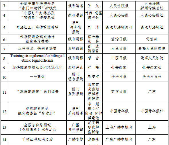 2019年度全国政法优秀新闻作品评选结果公示公告
